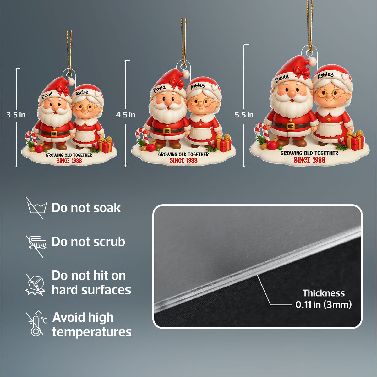 💖This personalized acrylic ornament immortalizes the beautiful journey of growing old together, just like Santa and Mrs. Claus. Whether it’s your first Christmas as a couple or your 50th anniversary, this keepsake is a tender reminder that the best gifts aren’t just given… they’re shared.✨