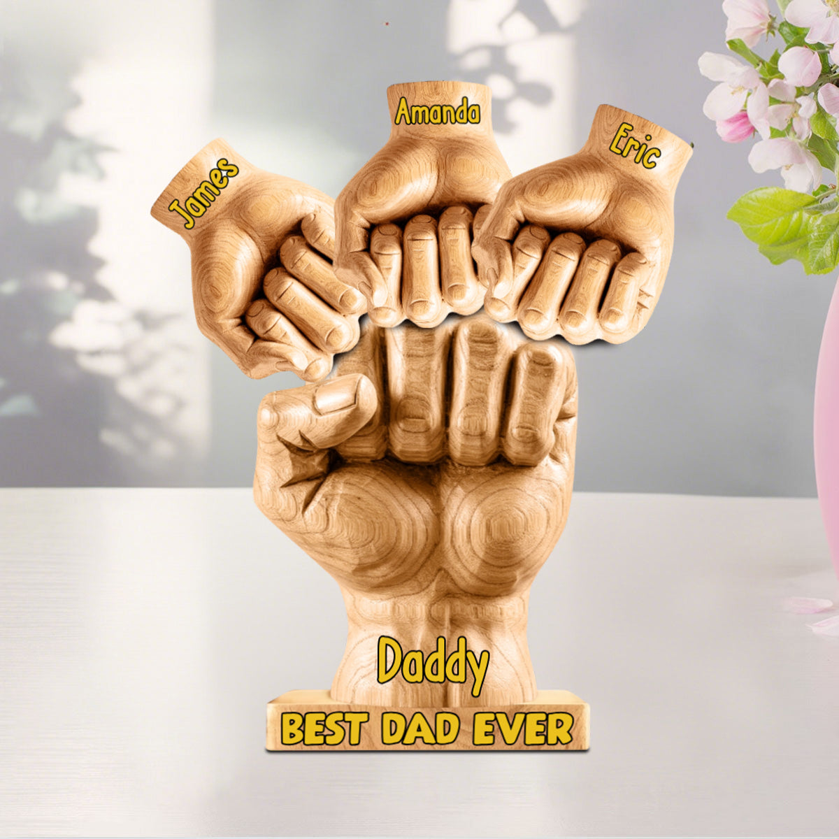 Celebrate your unbreakable bond with our "Best Dad Ever" Personalized Acrylic Plaque featuring a meaningful fist bump design. This custom-shaped keepsake symbolizes the special connection between father and child, creating a powerful reminder of your relationship. Made from premium acrylic that brilliantly catches light, this distinctive gift makes a statement in any space. Give the father figure in your life a meaningful token he'll treasure daily – the perfect way to show your appreciation on Father's Day, birthdays, or just because.
