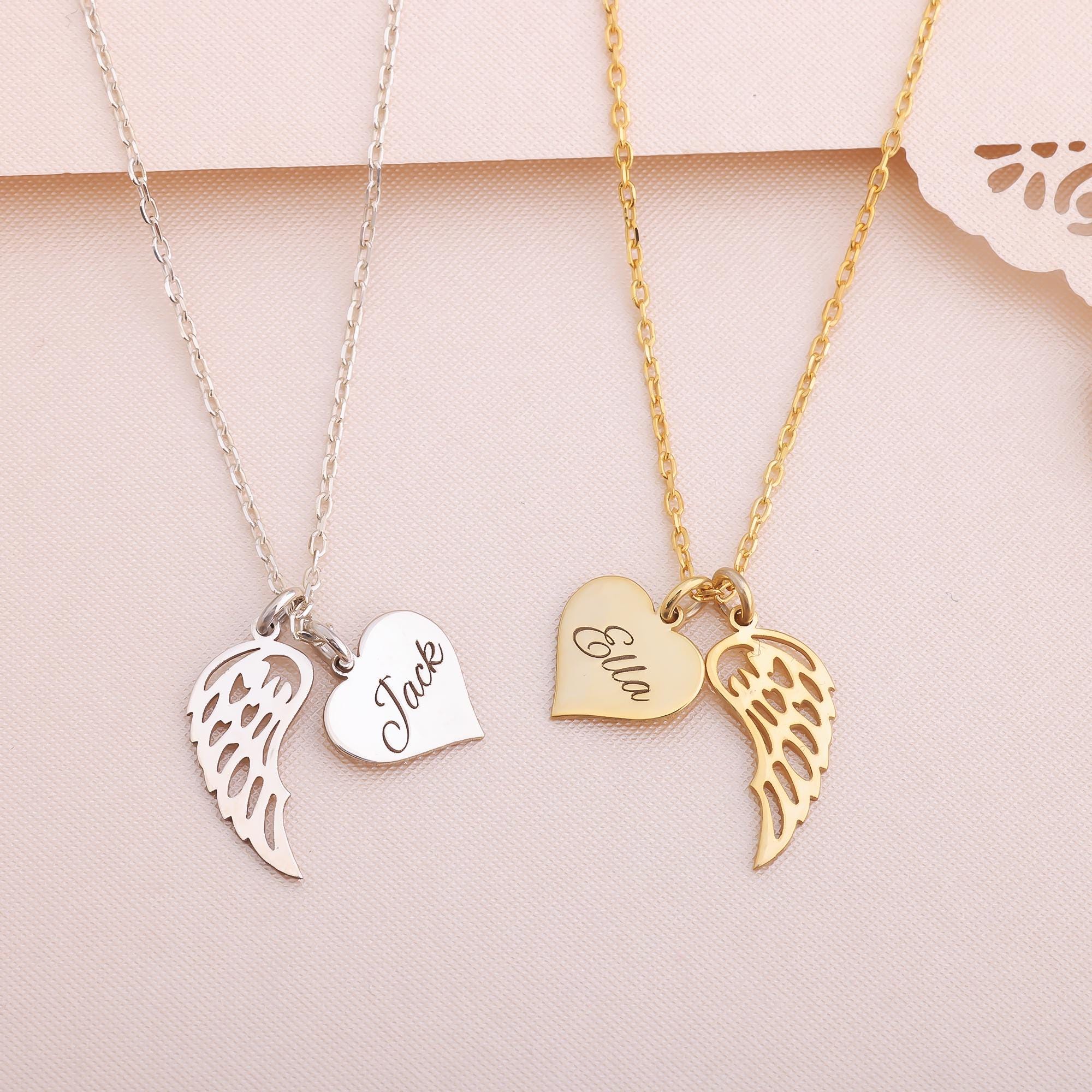 Heart Name Necklace with Wings Personalized Memorial Angel Wing Necklace