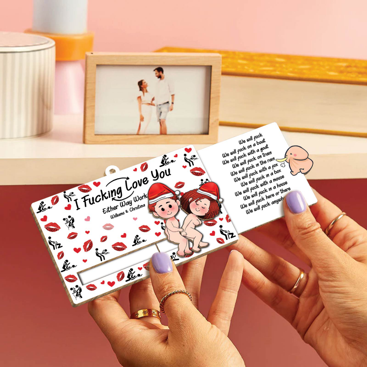 Cutesy love gift for demure couple with our hilarious wooden ornament products.