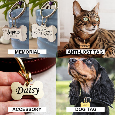💗 Our Personalized Stainless Steel Bone Dog Tags are engraved with your furry friend‘s personal message. They make the perfect gift for pet keepsakes, pet birthdays, Christmas, or any other occasion. Commemorate a special event in your family's life with this special gift.🐶